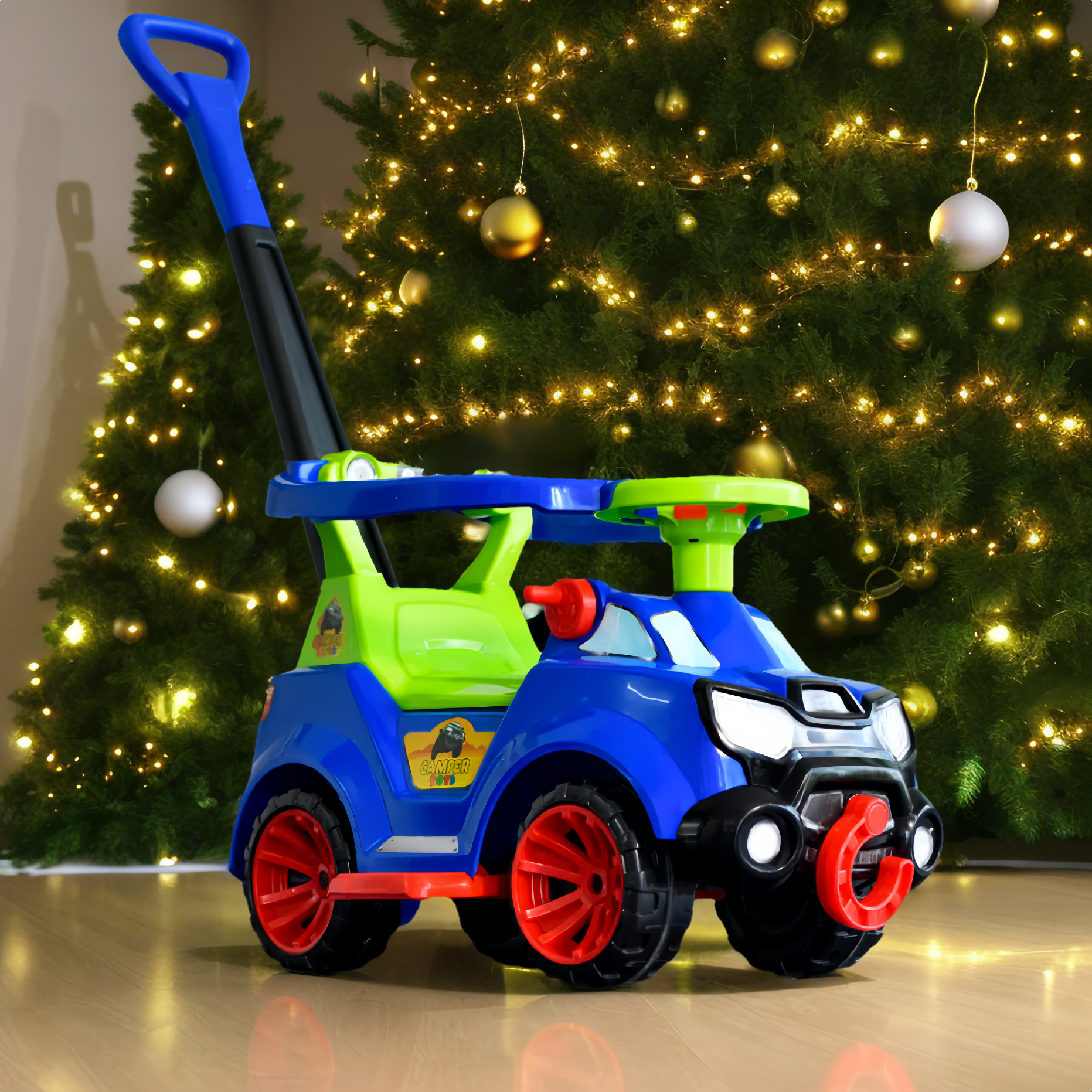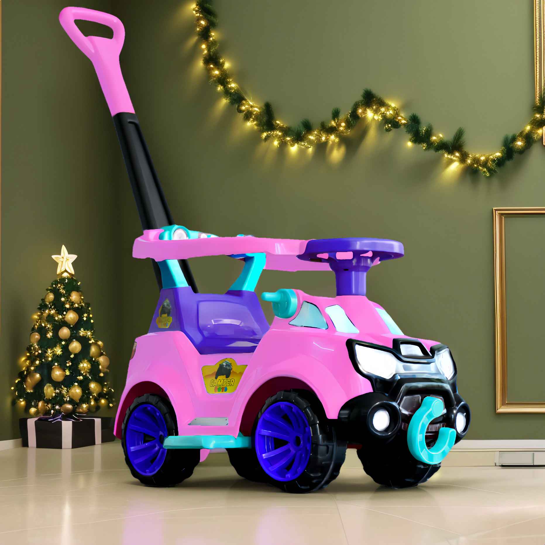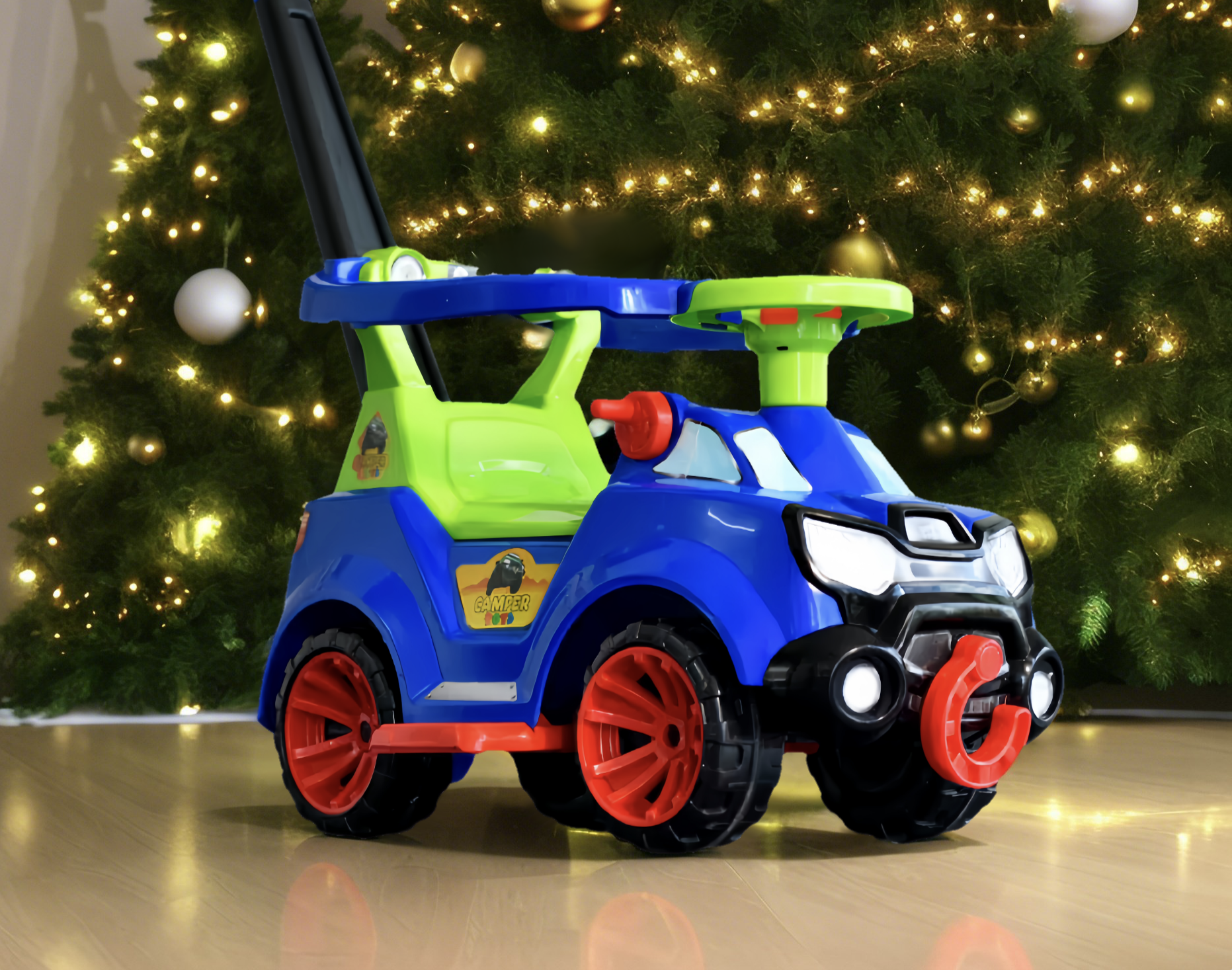 Este juguete multifuncional es ideal para niños y niñas, ya que sirve como paseador, caminador y montable. Con un sistema seguro ante caídas y sonidos reales, ofrece una experiencia divertida y segura para fortalecer el cuerpo y desarrollar la creatividad.