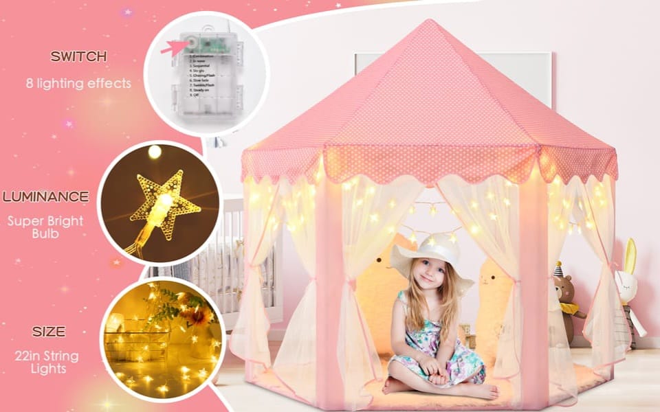 Nota: Las cortinas y el piso son incorporados en la carpa del castillo, no incluye juguetes.